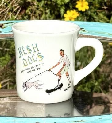 なぜかアメリカのスケーターはno moneyでも犬だけは飼っていることが多いが、、それも小型犬ではなくほとんどのスケーターが食費のかかりそうな”ピットブル”を愛している。その大型犬に引かれながらプッシュしているスケーター冥利に尽きるアートワーク。マグの形も良いし、陶器のクオリティは日本製にこだわりました。同じ形のゲイリー・パンターのマグも同時発売、セットでいかがでしょうか?